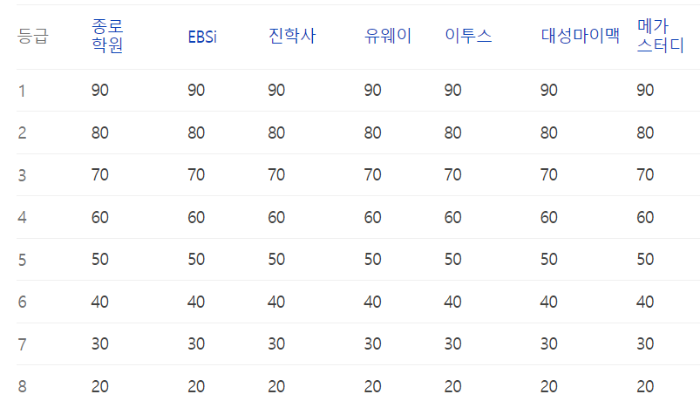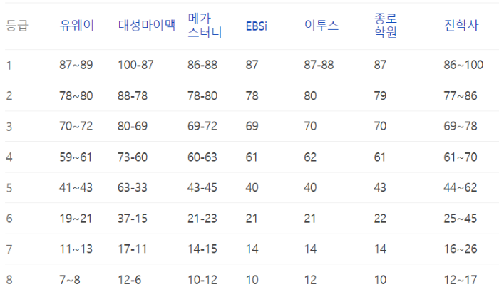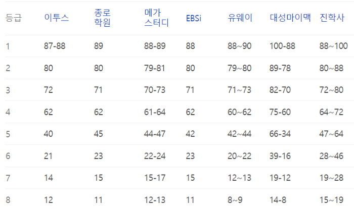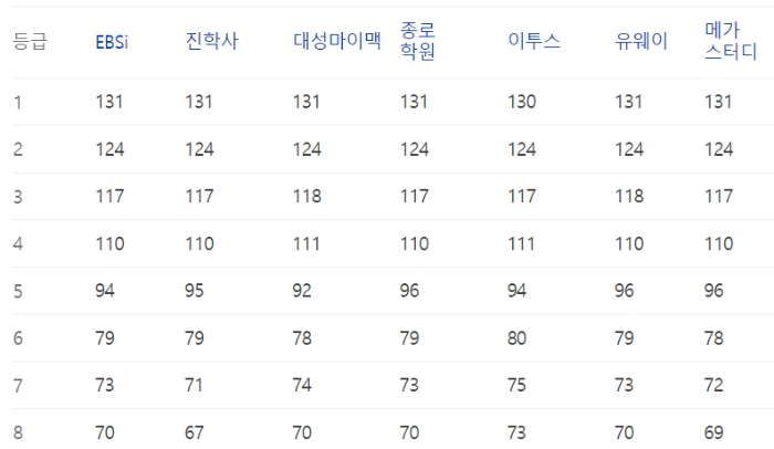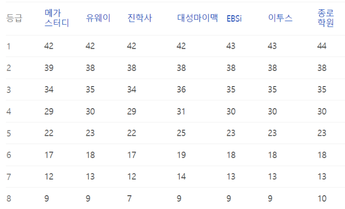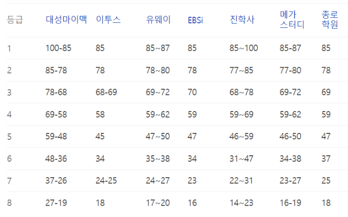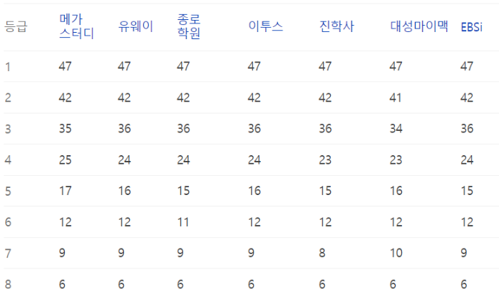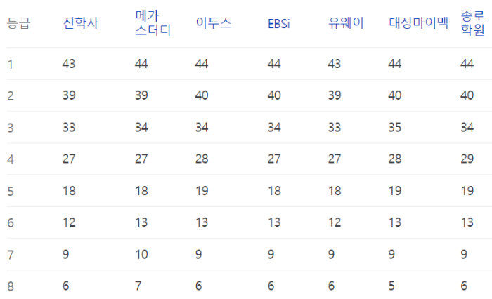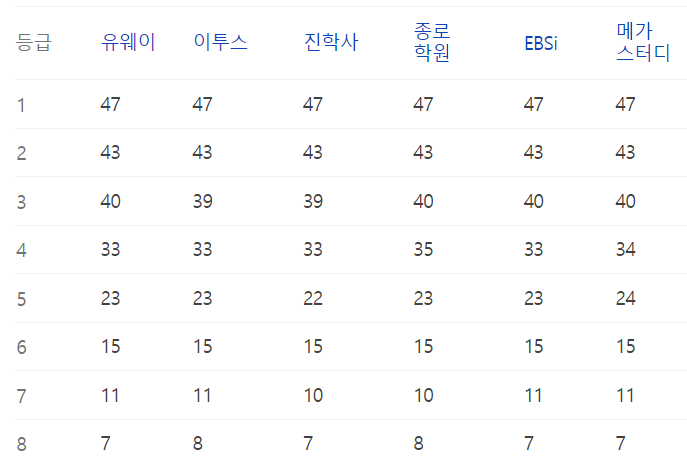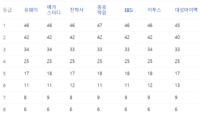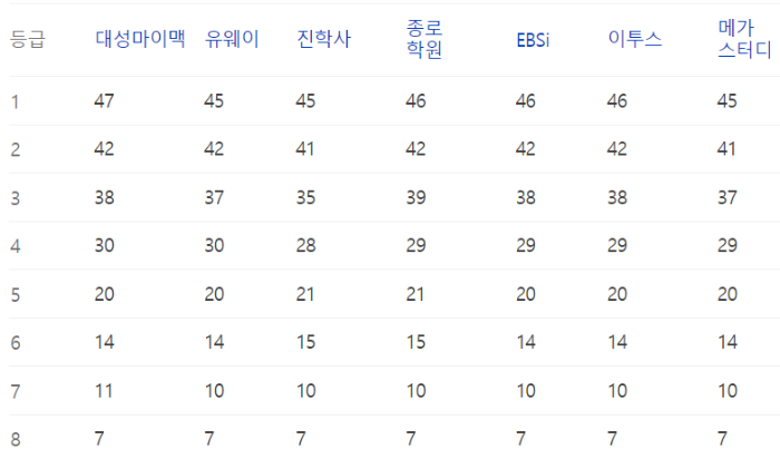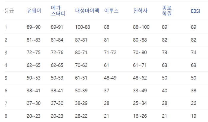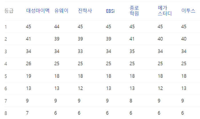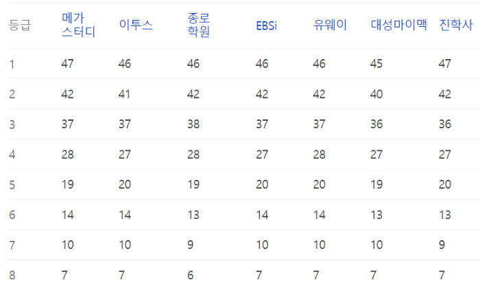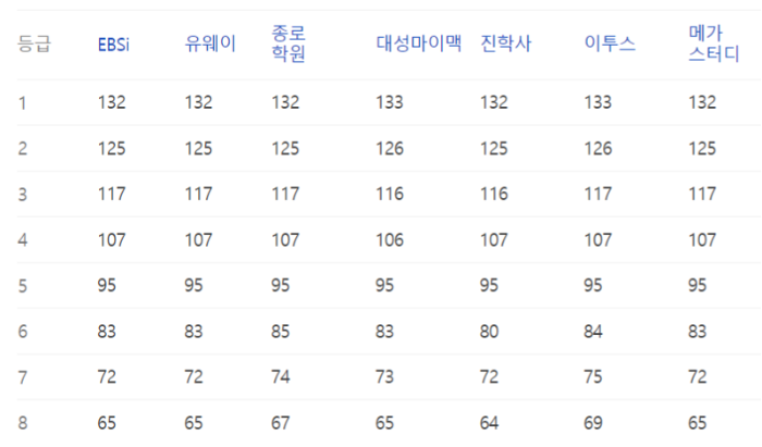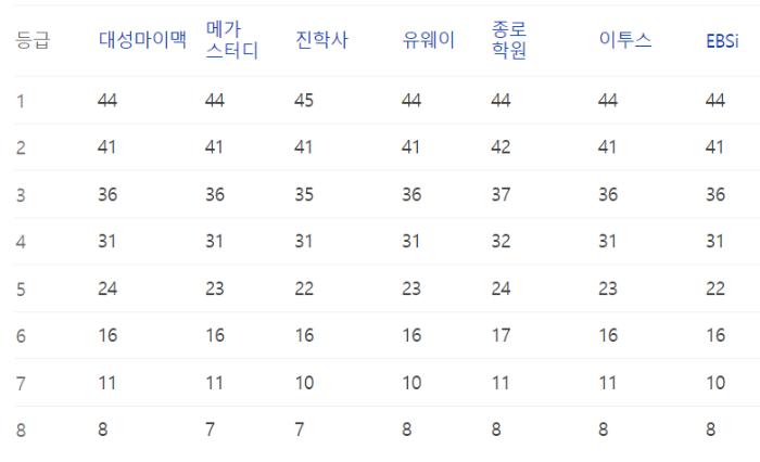 이번 수능의 예상등급컷 정보