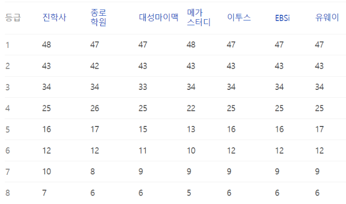 한국사 예상등급컷