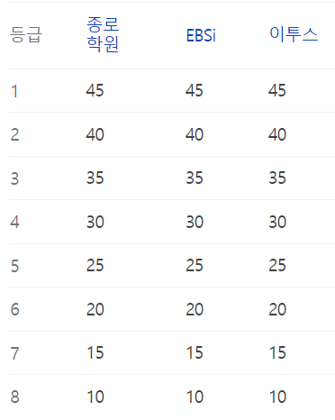 업체별 예상등급컷